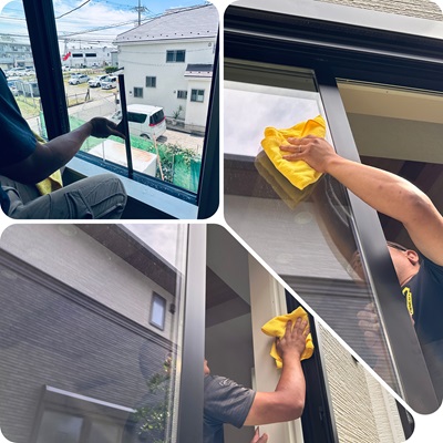 お住まいのガラス、ガラスサッシをおそうじ致します。